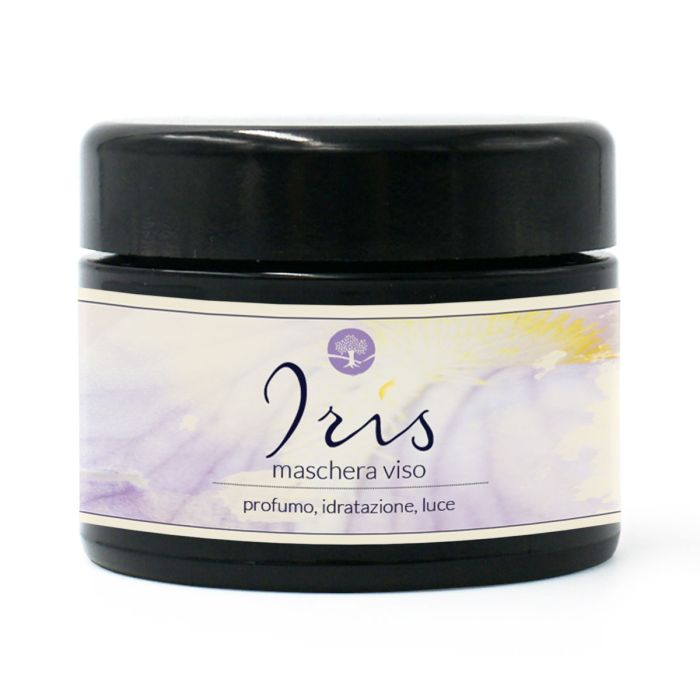 iris, argilla bianca, oli essenziali di arancio amaro, lavanda, litsea, ylang, mandarino, vetiver e cisto, rimedi floreali di iris e crab apple.