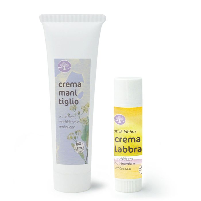 Ingredienti CREMA MANI AL TIGLIO: oli di girasole, jojoba e mandorle, oleolito di tiglio, acque aromatiche di lavanda, menta e basilico, estratti di vulneraria, aloe e tiglio, oli essenziali di limone, lavandino e mirra, rimedi floreali di tiglio, walnut e rosmary.